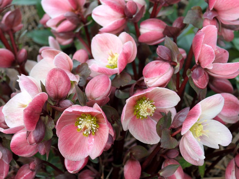 Hellebores do not require much care which for me is always a good thing. When there are a few mild days during the winter, it is wise to "clean up" the typical Orientalis hybrids by removing the foliage of the previous year. It usually looks quite ratty at the end of the winter when the flowers bloom and it will be easier to do that before the new growth emerges. It is not wise to trim back the leaves on some of the other varieties like H. niger selections or those of H. foetedis. They need the leaves.