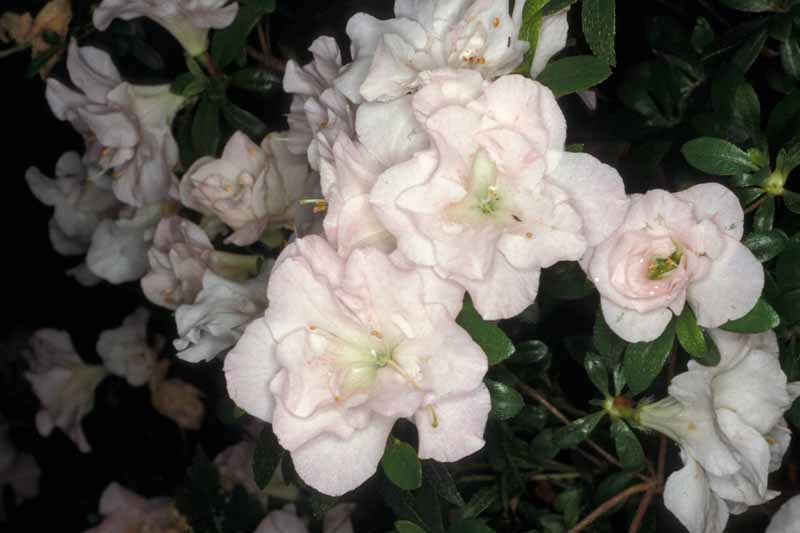 As Registered White flushed with RHS 49C (light Pink); occasional flecks, stripes, or sectors RHS 52C (deep Pink)