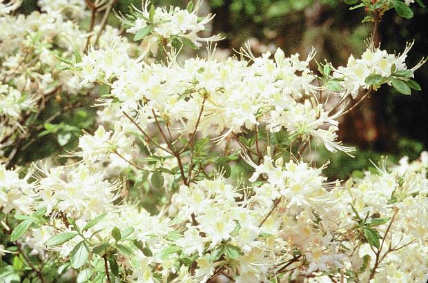 Rhododendron alabamense, or the Alabama Azalea, has snowy white