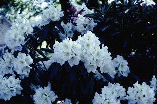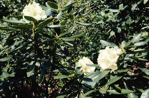 County of York- Catawbiense Alba x Loderi group. Previously called Catalode. Grows well in many conditions, best in light shade. Roots and grafts easily. Very plant hardy, to minus 15 deg. Distinctive curved leaves.